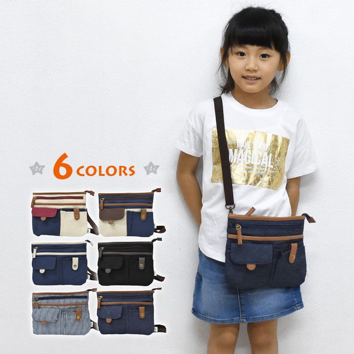 キャンバス フェイクレザー ショルダーバッグ オリジナル /子供 子供用 子ども こども キッズ ジュニア 女の子 女子 男の子 男子 小学生 保育園 幼稚園 子供バック 子供バッグ ショルダーバック 斜めがけバッグ 斜めがけ 可愛い かわいい おしゃれ デニム ヒッコリー/